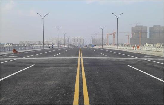 土方開挖3127 m3,土方回填9274 m3,鋼筋制作安裝1118T,鋼絞線120噸,混凝土13684m3,瀝青混凝土707 m3。